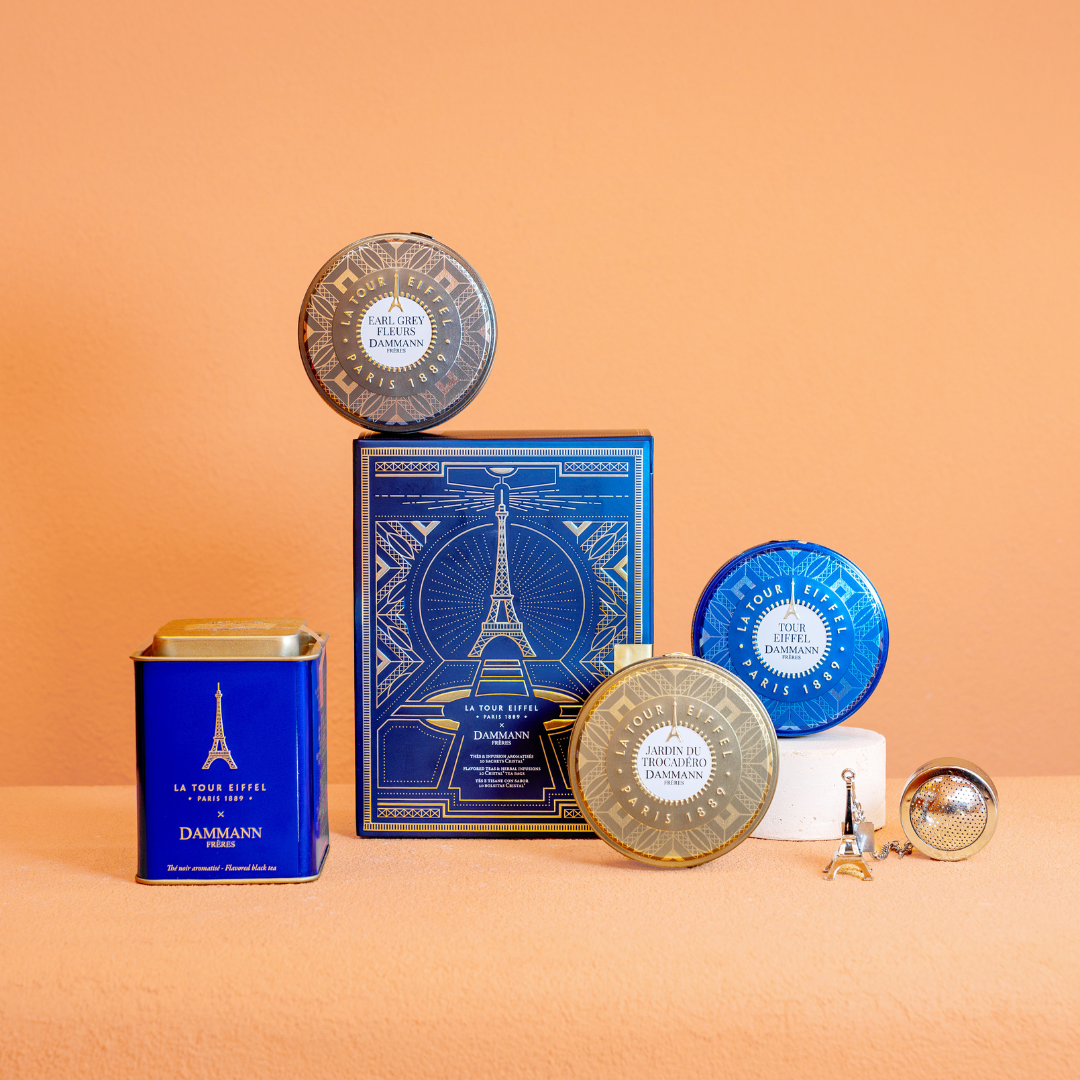 In occasione dell'anno olimpico, Dammann Frères ha creato due miscele originali di tè ispirate alla Torre Eiffel e ai suoi giardini per questa nuova linea prestigiosa e storica, frutto di un accordo che unisce le forze della Tour Eiffel e della rinomata Maison Dammann Frères.